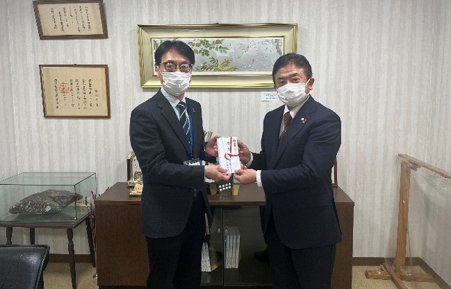 東遊商では同じ台東区という縁から10数年前より地域貢献活動として同大学における様々な活動を支援しており、東遊商の周年行事での講演や演奏会、また東遊商のロゴマークデザインのコンペなど、同大学との交流を深めてまいりました。感謝状の授与は、令和6年12月16日に東遊商事務局にて行われ、同大学アカンサス音楽祭実行委員長の成田英明教授より東遊商の中村昌勇理事長に感謝状が手渡されました。